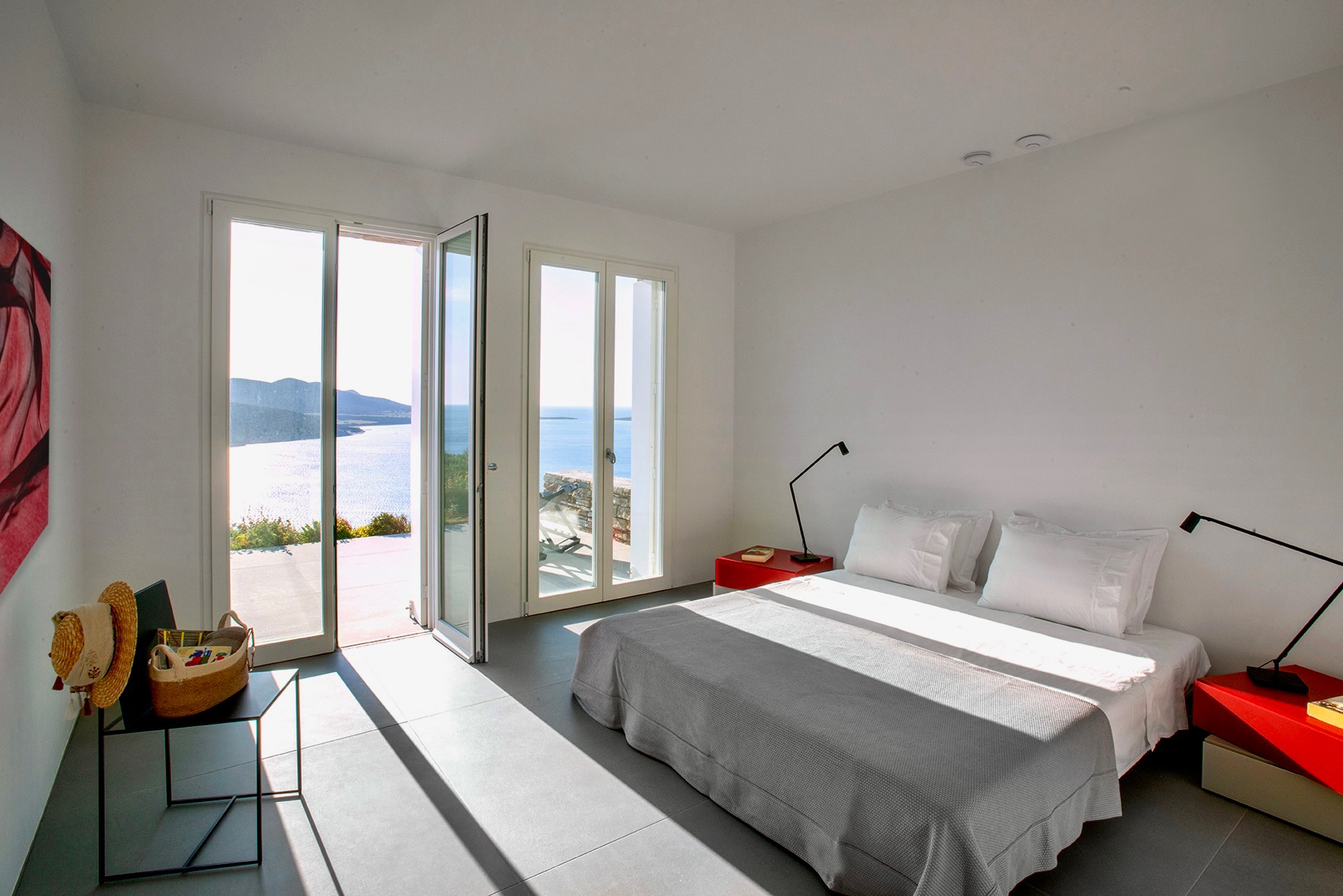 All bedrooms have their own private outdoor seating areas with views of the mesmerising Aegean Sea over areas conceived by renowned Greek landscaper Helli Pangalou.
